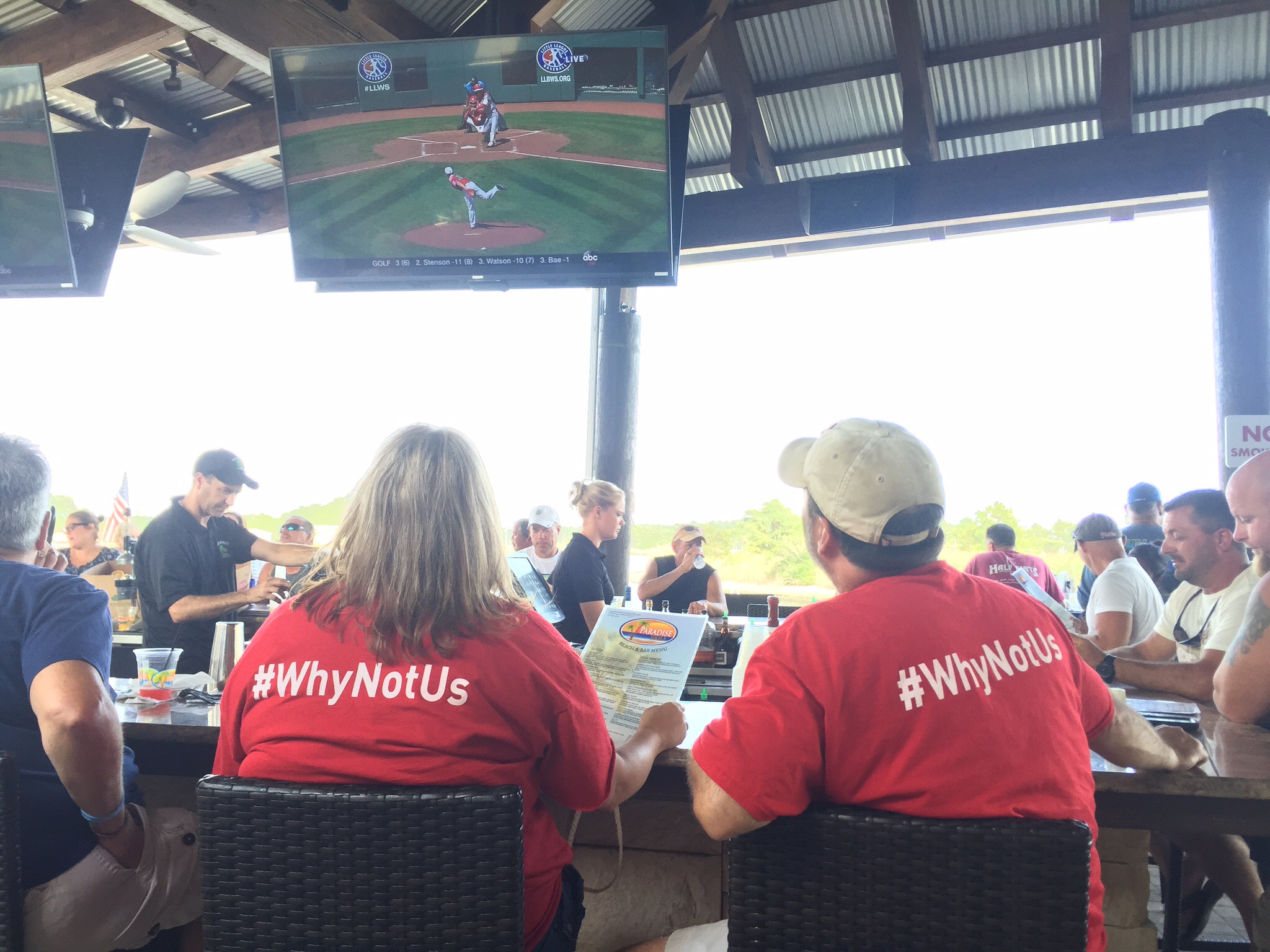 While many scoring records were broken that Sunday, our team came up a bit short, but a valiant effort and a great season. Congrats to the boys, their coaches, and fans. These two fans flew the colors at the Paradise Grill in Longneck, DE a great spot on Rhehoboth Bay for you shallow drafters.
